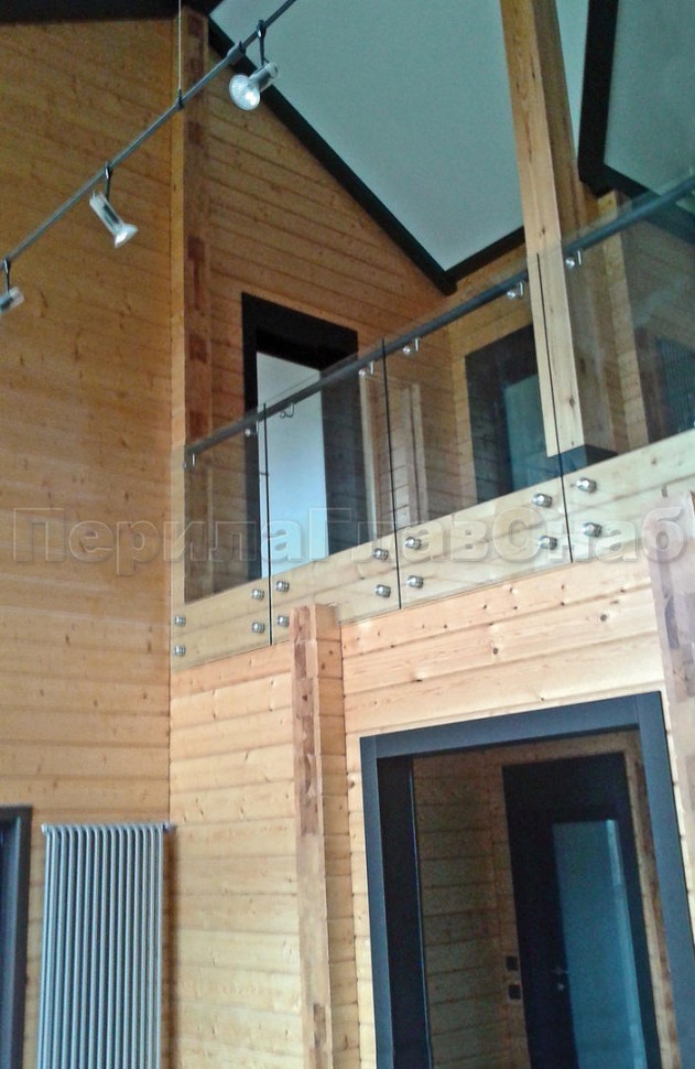 Ограждение с деревянным поручнем на точечном креплении