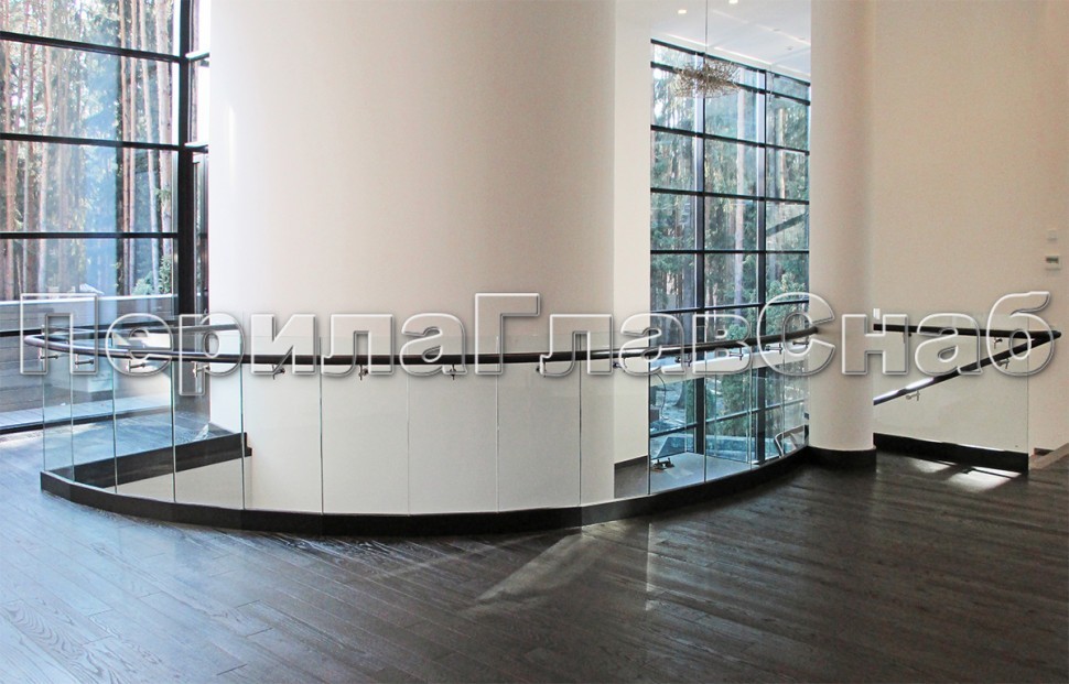 Ограждение с профильным поручнем с пазом на точечном креплении на лестнице