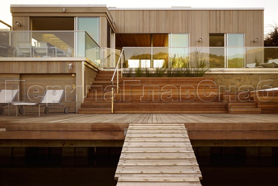 Ограждение с деревянным поручнем на выносе на точечном креплении