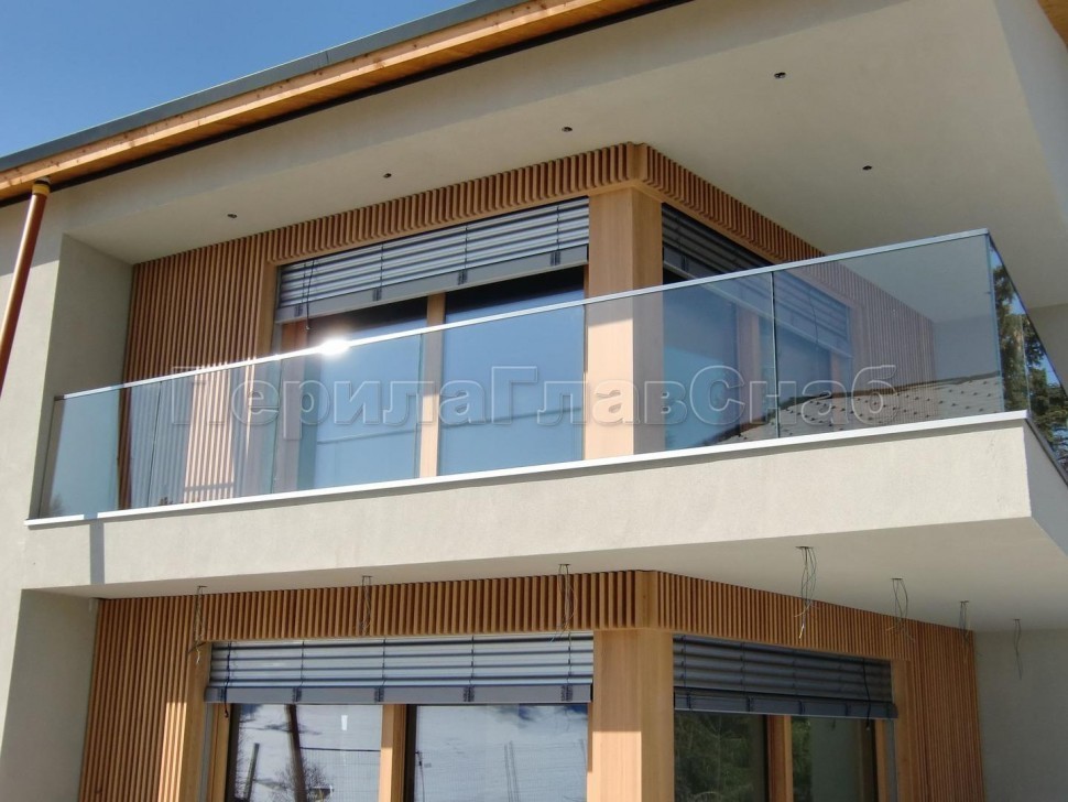 Ограждение с деревянным поручнем на точечном креплении