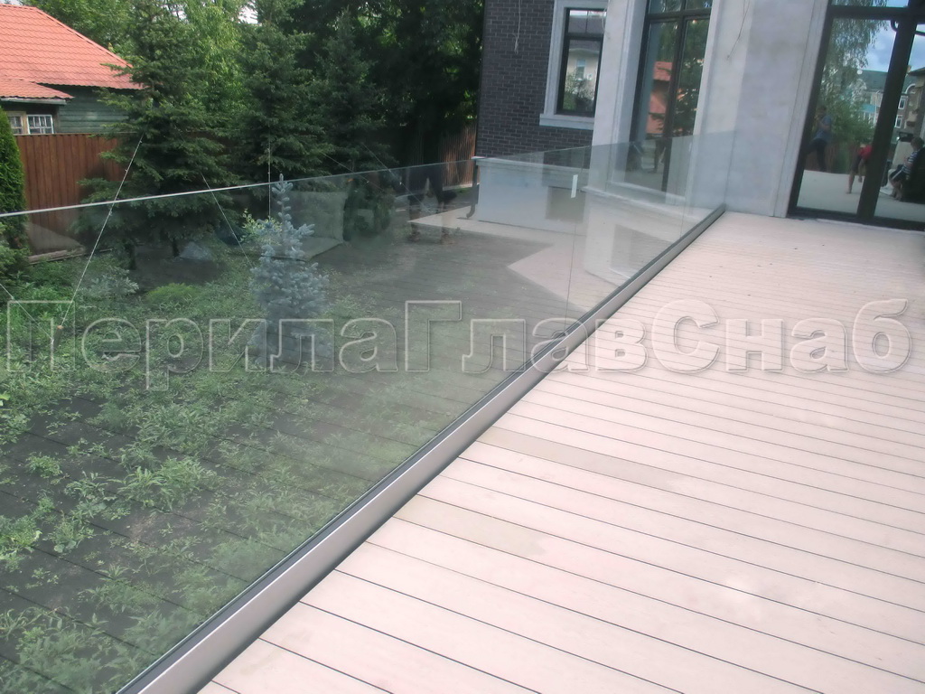 Стекло может быть установлено в зажимной алюминиевый профиль. Для стекол разной толщины и высоты мы разработали и изготовили собственные запатентованные системы зажимных профилей, которые выдерживают нагрузки до 5кН согласно СП 20.13330.2016. Для вас это означает, что установленные «ПерилаГлавСнаб» стеклянные ограждения будут соответствовать строительным нормам безопасности эксплуатации.