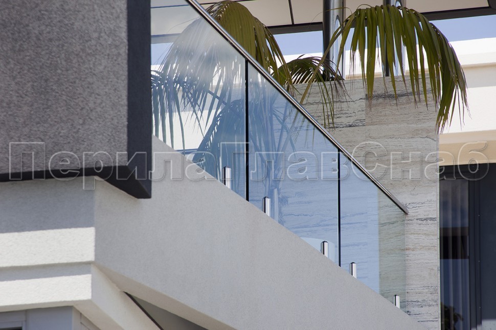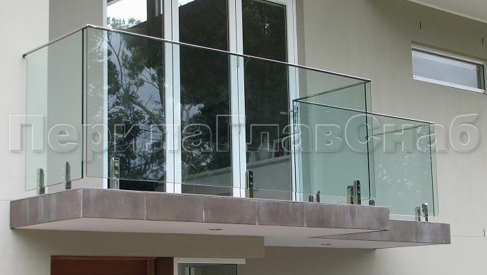 Цельностеклянные перила для балконов и лоджий с креплением на министойки.