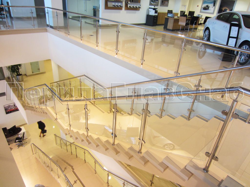 Перила из стекла и нержавейки в магазине.