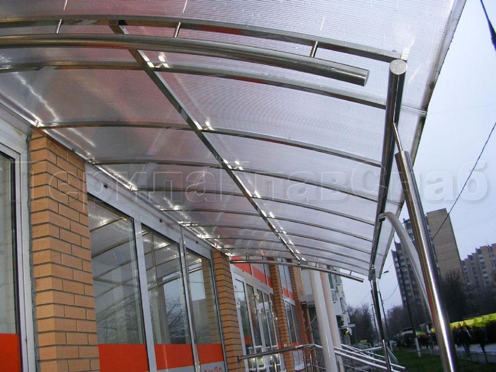 Козырек из поликарбоната на прямом каркасе