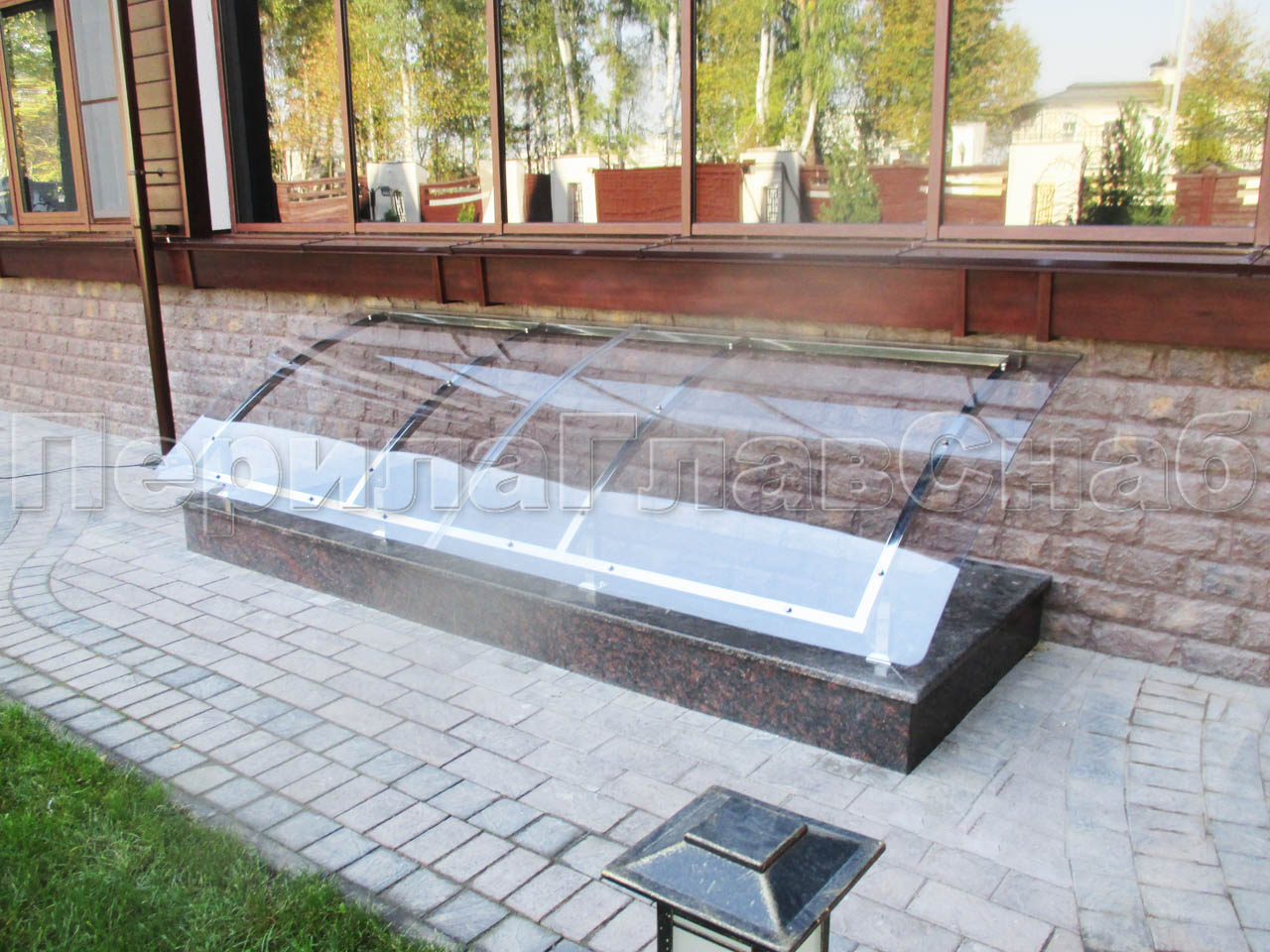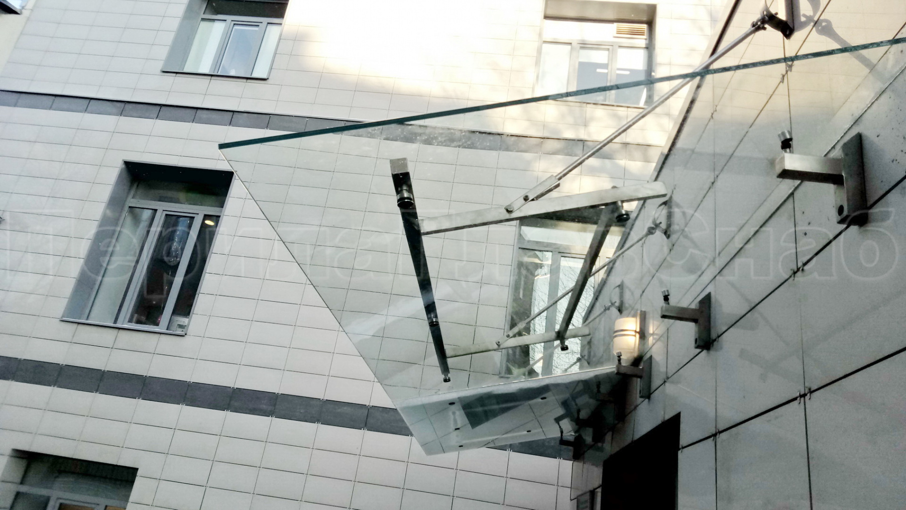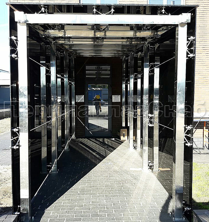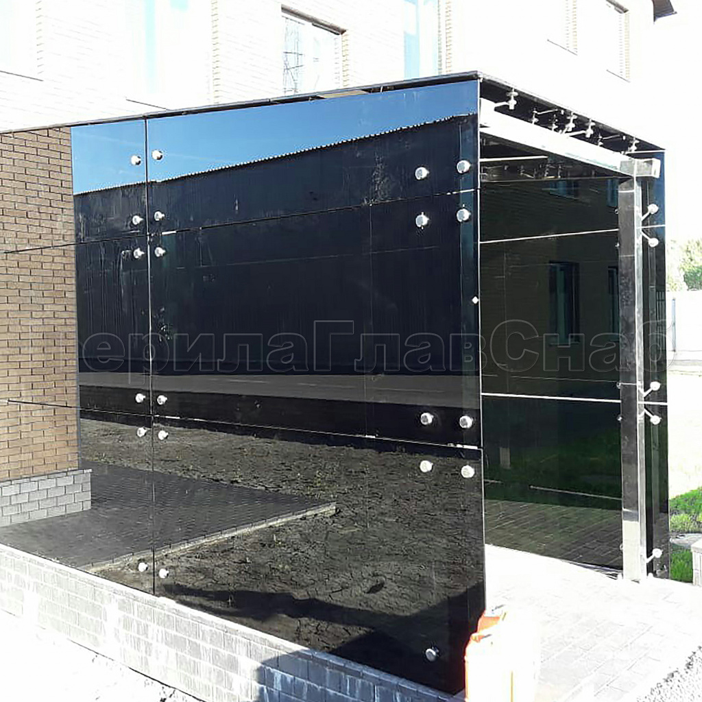 Стеклянный козырек на прямом каркасе