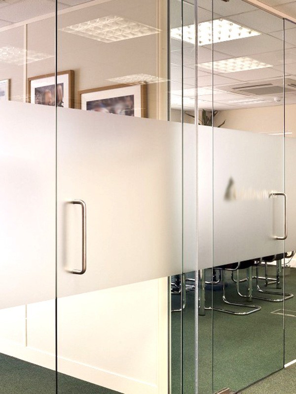 Стеклянные перегородки в офисе с закаткой пленки